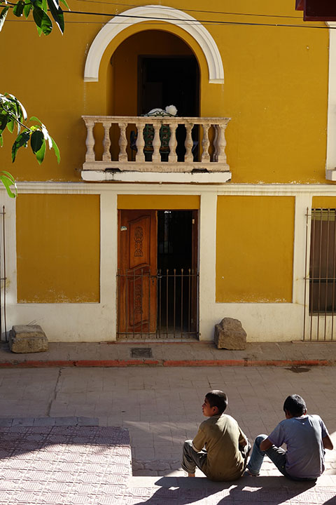 | Reaching the bottom of the Canyon we followed the river downstream to Batopilas, following the road through town looking for a place to stay, we ended up in what we thought was a traffic jam only to discover that it was a dead end street where people parked their vehicles and the road actually turned to the left, sitting on our bikes confused as to why the traffic wasn't moving a gentleman leaning against the doorway of a Yellow & Blue building asked us if we liked Peanuts? holding out a brown paper bag full of them, "We're actually looking for a Hotel" he looked at us curiously and responded, "This is a Hotel !?" then assured us that Senor Martin will be back soon and He can check us in, so Hotel Real De Minas Room #1 became our habitación while in Batopilas. |